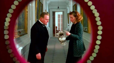 Elijo "Lo que queda del día" para inaugurar esta serie de artículos sobre novelas llevadas al cine porque es una de las adaptaciones más fieles y, al mismo tiempo, mejor conseguidas que conozco. En la tercera novela de Kazuo Ishiguro, ganadora del Booker Prize de 1989, el protagonista de la historia se dispone a visitar a la señorita Kenton, una antigua ama de llaves que trabajó en la misma casa donde él estaba empleado como mayordomo en los días más florecientes de su carrera profesional. Durante el viaje, el Sr. Stevens nos relata en primera persona acontecimientos que tuvieron lugar en aquella época. A través de esos recuerdos, vamos adivinando la relación entre Stevens y Kenton y entrevemos los sentimientos que uno podría tener hacia el otro. No es necesario decir lo que cuenta a su vez la película, pues se trata exactamente de lo mismo e igualmente se vale del viaje en presente y de retazos de un tiempo pasado para hacérnoslo llegar.